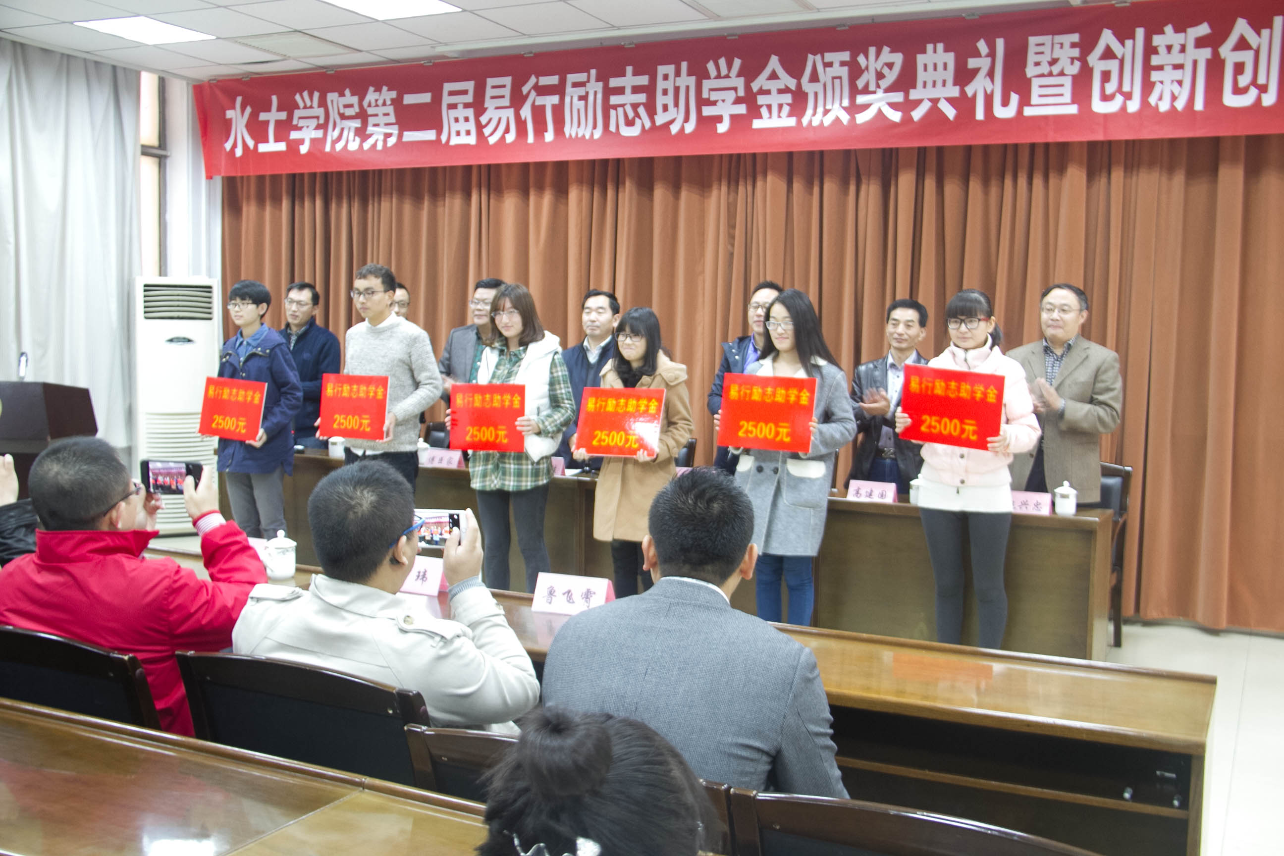 11月6日上午,水土学院第二届易行励志助学金颁奖典礼暨创新创业论坛于北校区文理大楼第二会议室隆重举行,院长刘福胜、易行励志助学金团队成员、易行励志助学金获奖代表、2014级、2015级建环专业所有学生出席了颁奖典礼。
