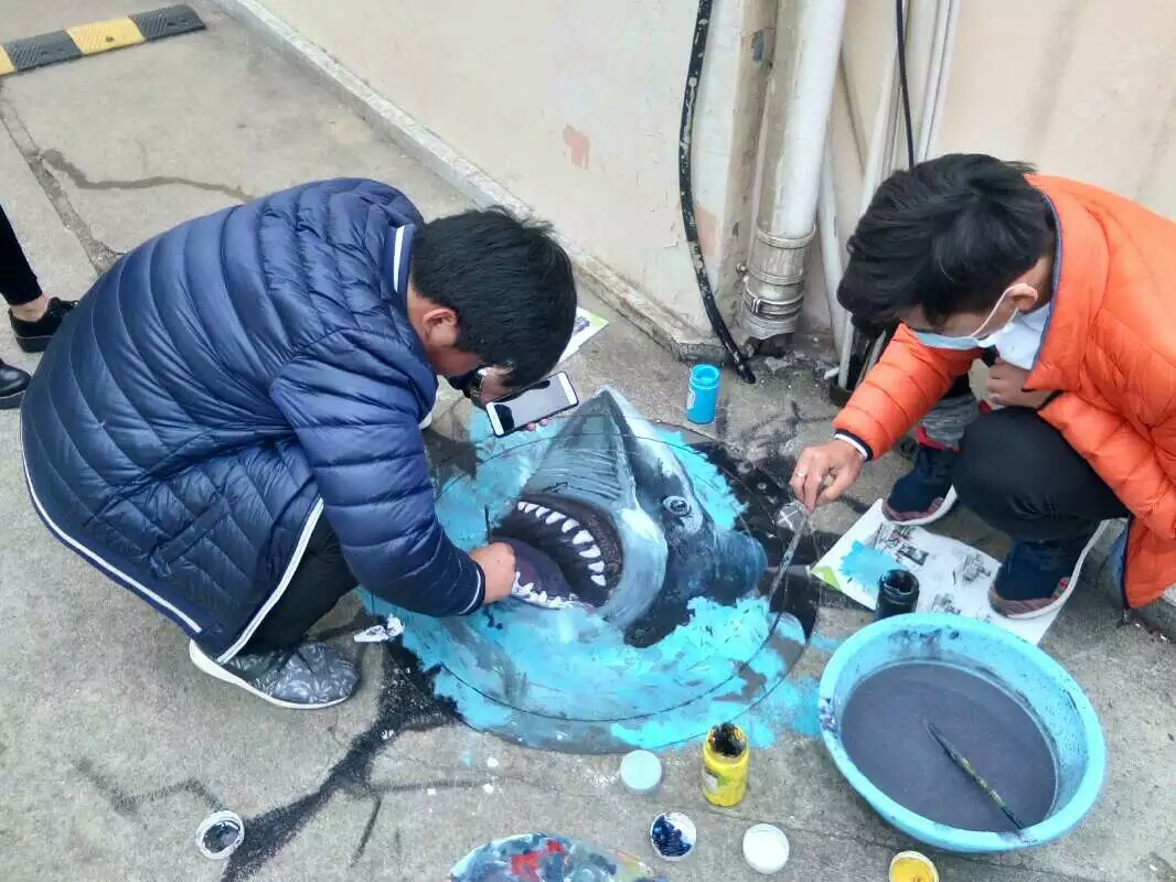 比赛从早上八点正式开始,24支团队各就各位,参赛者们不顾转凉的天气,席地而坐,摆放工具、起形、调色……他们通过艺术构思、整体设计,在妙笔巧手下,平凡的井盖一点点地蜕变。别致的想法、出彩的设计让不起眼的井盖华丽转型,每一幅涂鸦都凝聚了学生们的智慧,展示了学生们的青春风采与个性发展。
