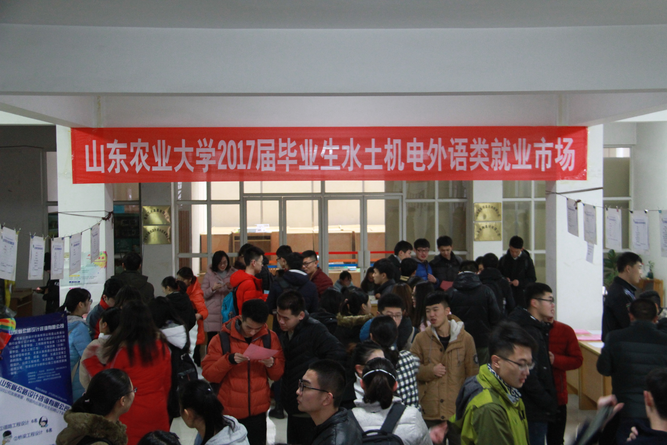 12月26上午,由学工处主办,水土学院、机电学院、外国语学院承办的“山东农业大学2017届毕业生水土、机电、外语类就业类市场”在北校区水土学院制图楼举办。近80家用人单位前来招聘,招聘专业涵盖水土学院、机电学院、外国语学院所有专业以及经济、化学、食品类等相关专业,提供实习、就业岗位超过1000余个,吸引了各学院毕业生前来求职。