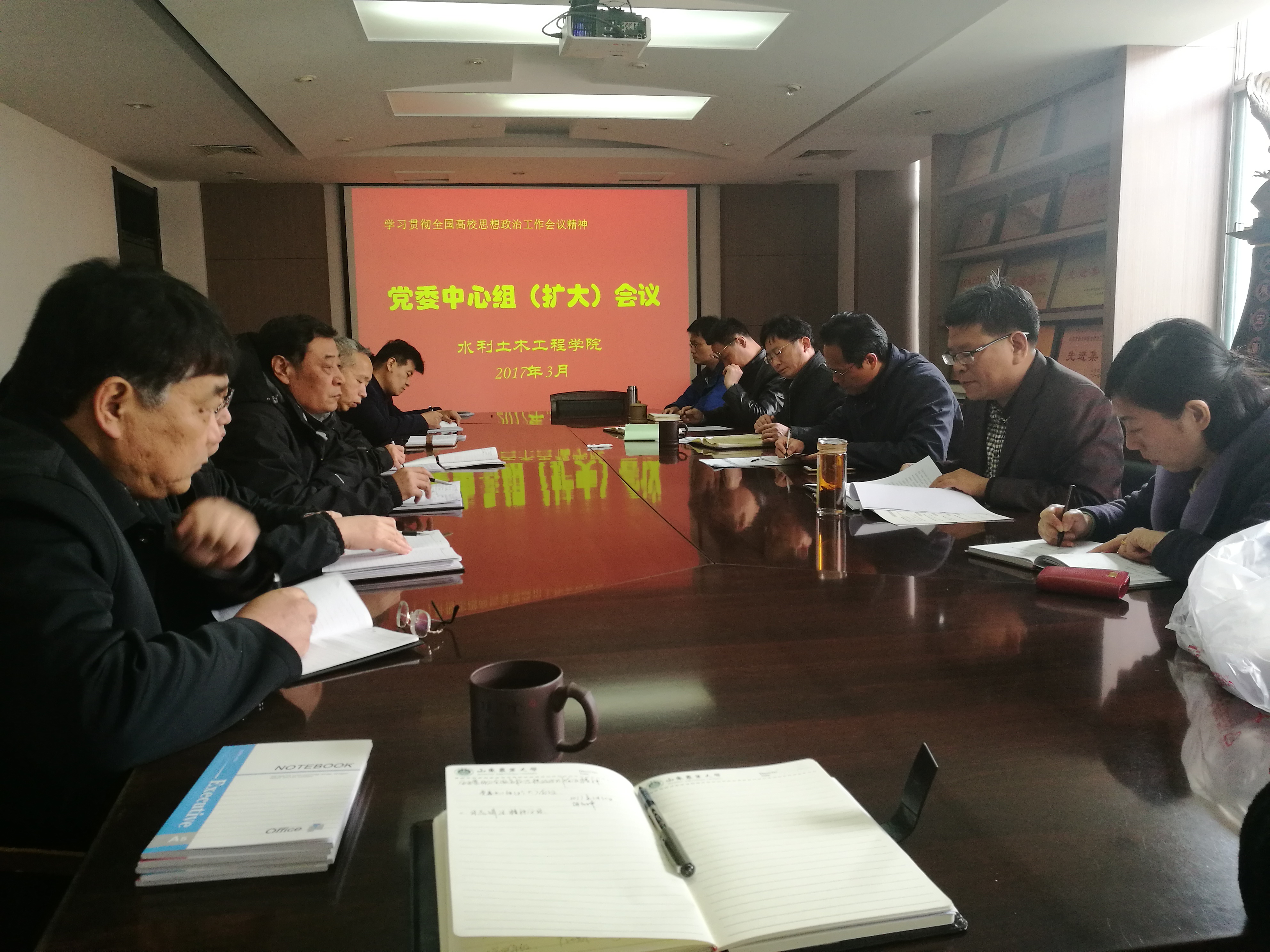 3月31日下午,水土学院在11号楼报告厅召开党委中心组(扩大)会议,学习贯彻全国高校思想政治工作会议精神,进一步推进“两学一做”学习教育常态化制度化学习。会议由学院党委书记胡化坤主持。