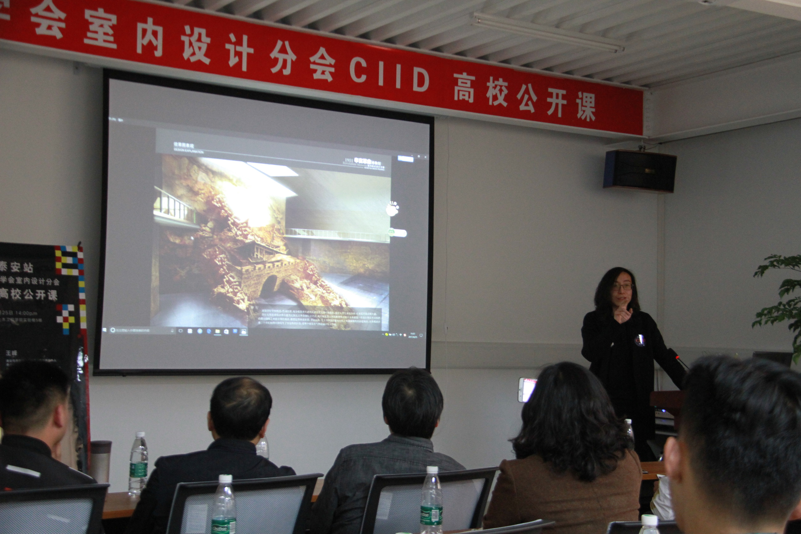 近日,由中国建筑学会设计分会主办,水利土木工程学院承办的“CIID高校设计公开课”在我校实验楼报告厅开讲。本次活动邀请了居然之家顶层设计中心设计总监李靖先生,泰安市美庭室内设计事务所联合创办人王峰设计师以及泰安万泰装饰设计师王凯作为主讲嘉宾。艺术设计系、装饰系、建筑系等专业的老师和学生参加了本次公开课。
