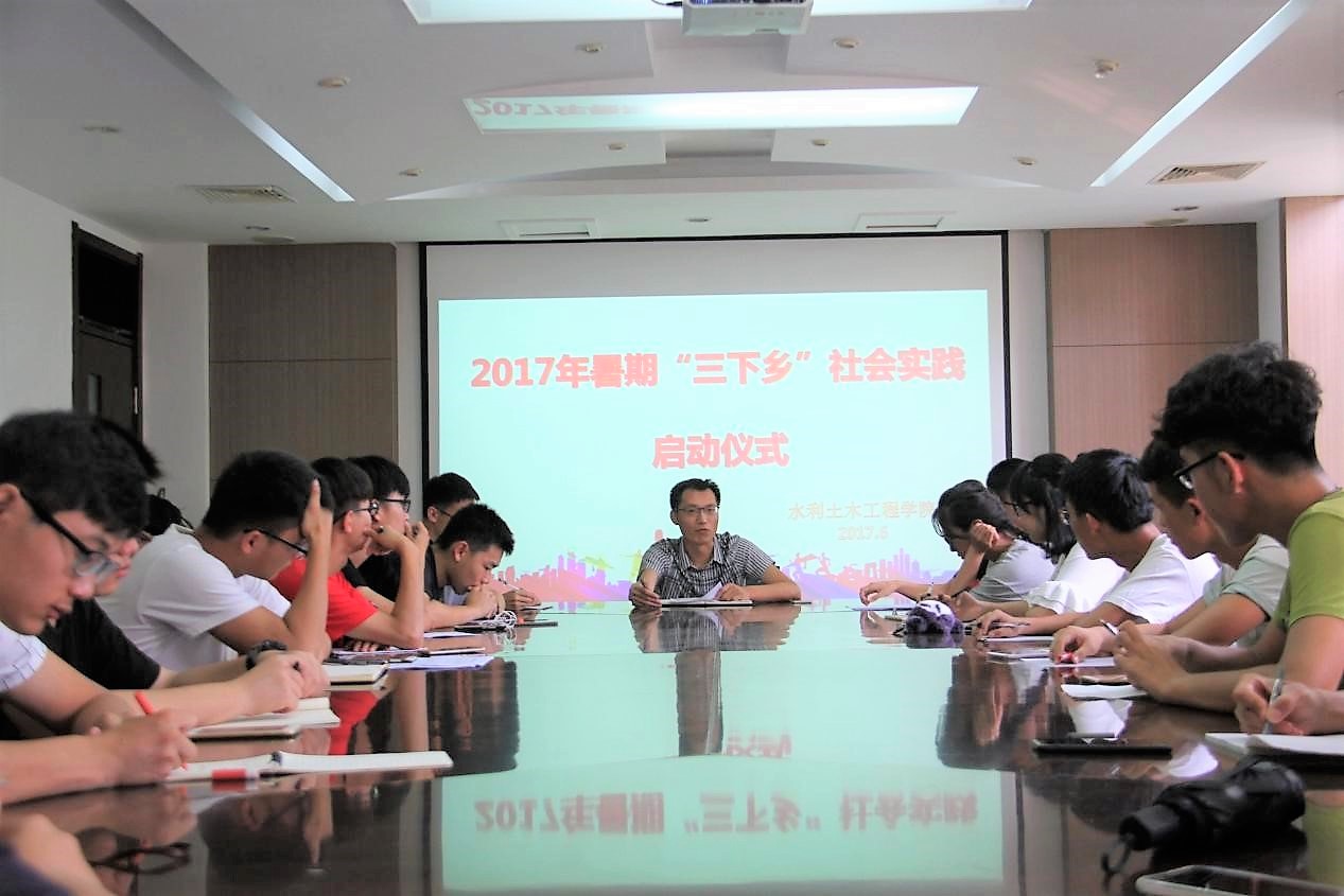 6月29日下午,水土学院2017年暑期“三下乡”实践活动启动仪式在北校区11号楼会议室举行。本次会议由学院团委书记杜洪涛主持,学院暑期“三下乡”实践活动各团队负责人参加会议。