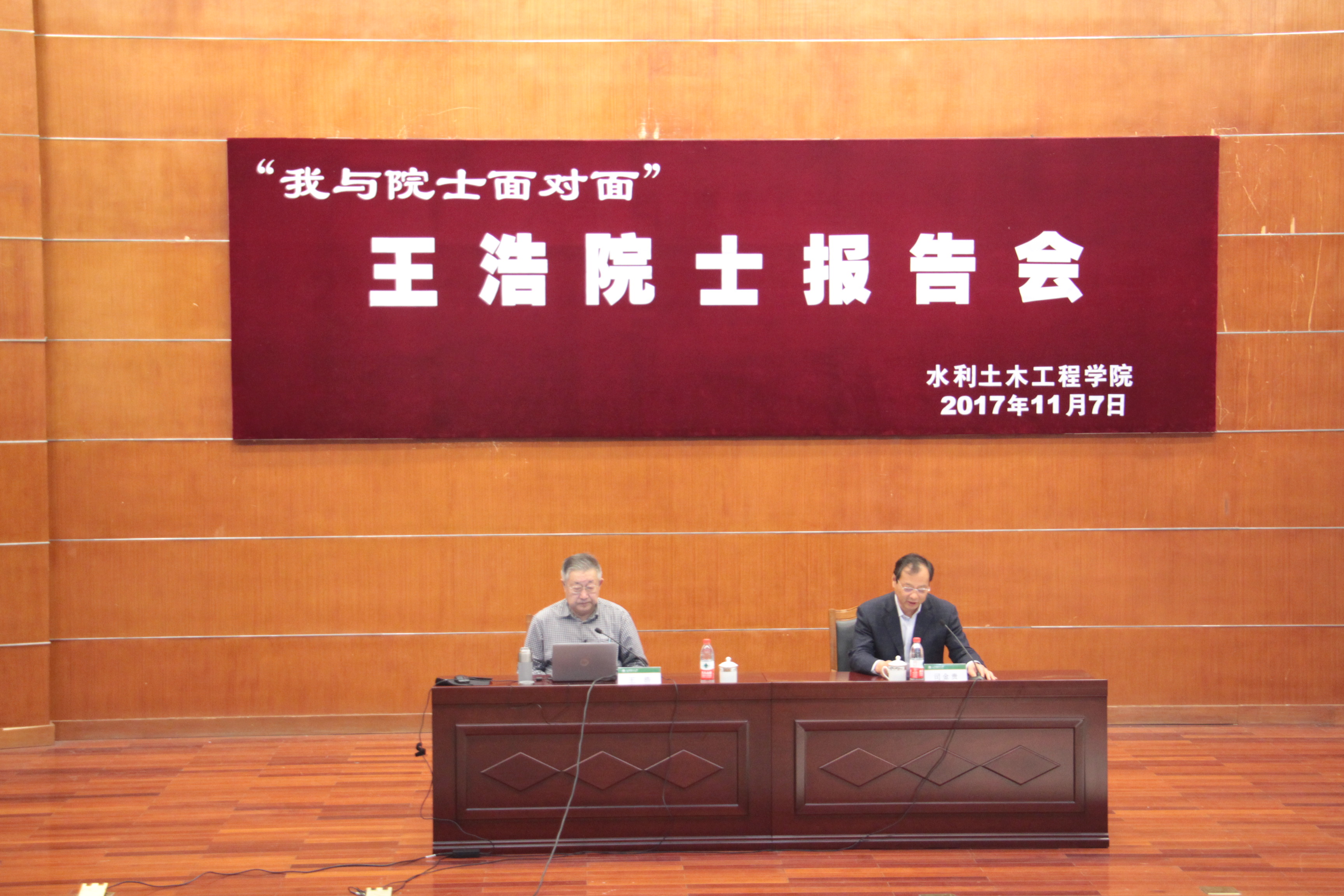 11月7日下午4点,中国工程院院士、水文水资源专家、中国水利水电科学研究院水资源研究所所长王浩受邀在文理大楼学术报告厅为我院师生做了题为“专业思想漫谈”的报告。报告会由司金贵副校长主持,我院相关专业的老师、400余名学生聆听了王院士的报告。