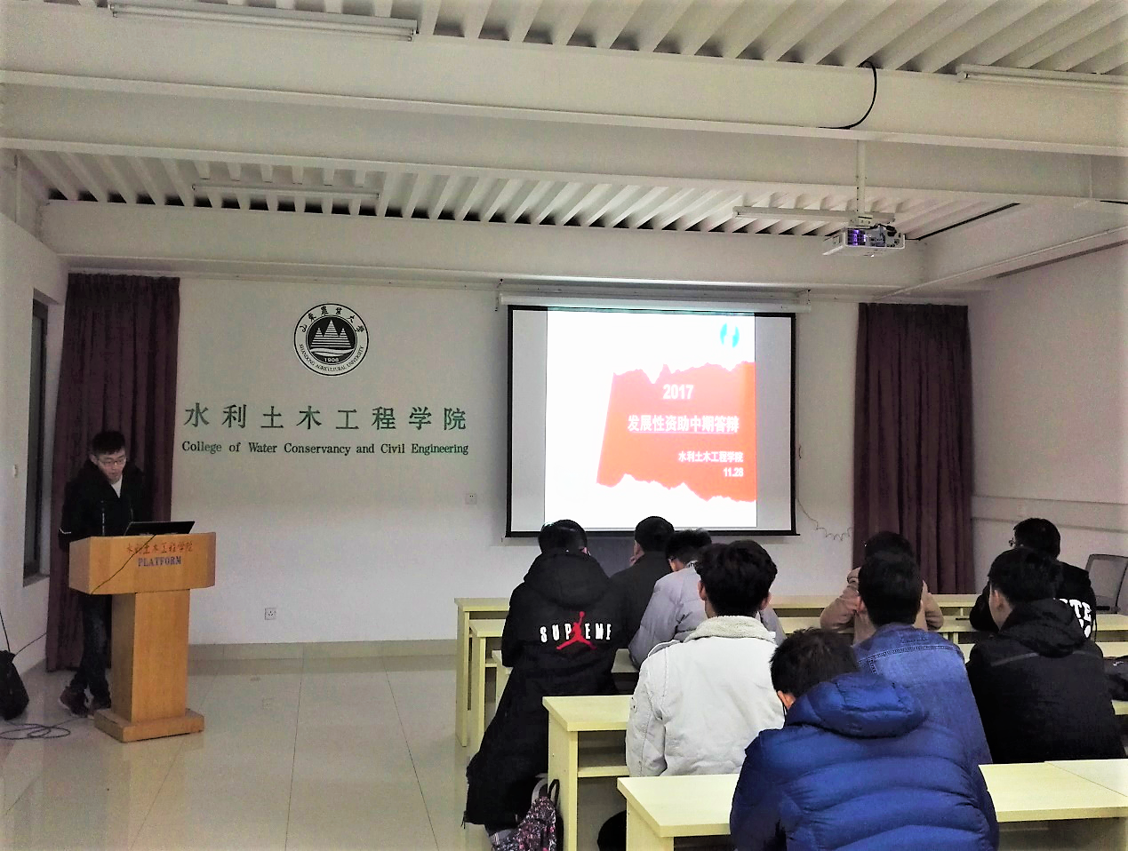 11月28日,水土学院于北校区水工实验楼621开展2017年发展性资助立项中期审核答辩,答辩采取3+1模式,旨在系统了解学院发展性资助工作进展情况,统筹学院学生发展性资助工作计划。团委副书记苏郡、兼职辅导员李越凡受邀出席本次活动并担任评委。