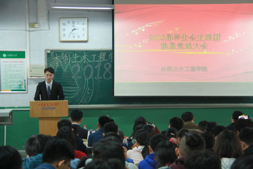 3月24日,水土学院于北校区12号楼111教室召开2018届主席团换届竞选大会。学院团委全体老师,16、17全体班团及部分学生代表共同参加了本次大会。大会由水土学院2017届学生会主席施文浩主持。