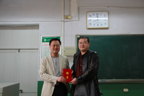 4月1日,水利工程系邀请了山东华新房地产开发公司项目范洪波总工程师为我系2015级水利水电工程专业学生进行《工程造价与招投标》课程的企业实践课堂教学。我系张玉明老师为范洪波总工程师颁发特聘证书,并同学生一起参与和学习了本次课堂教学。