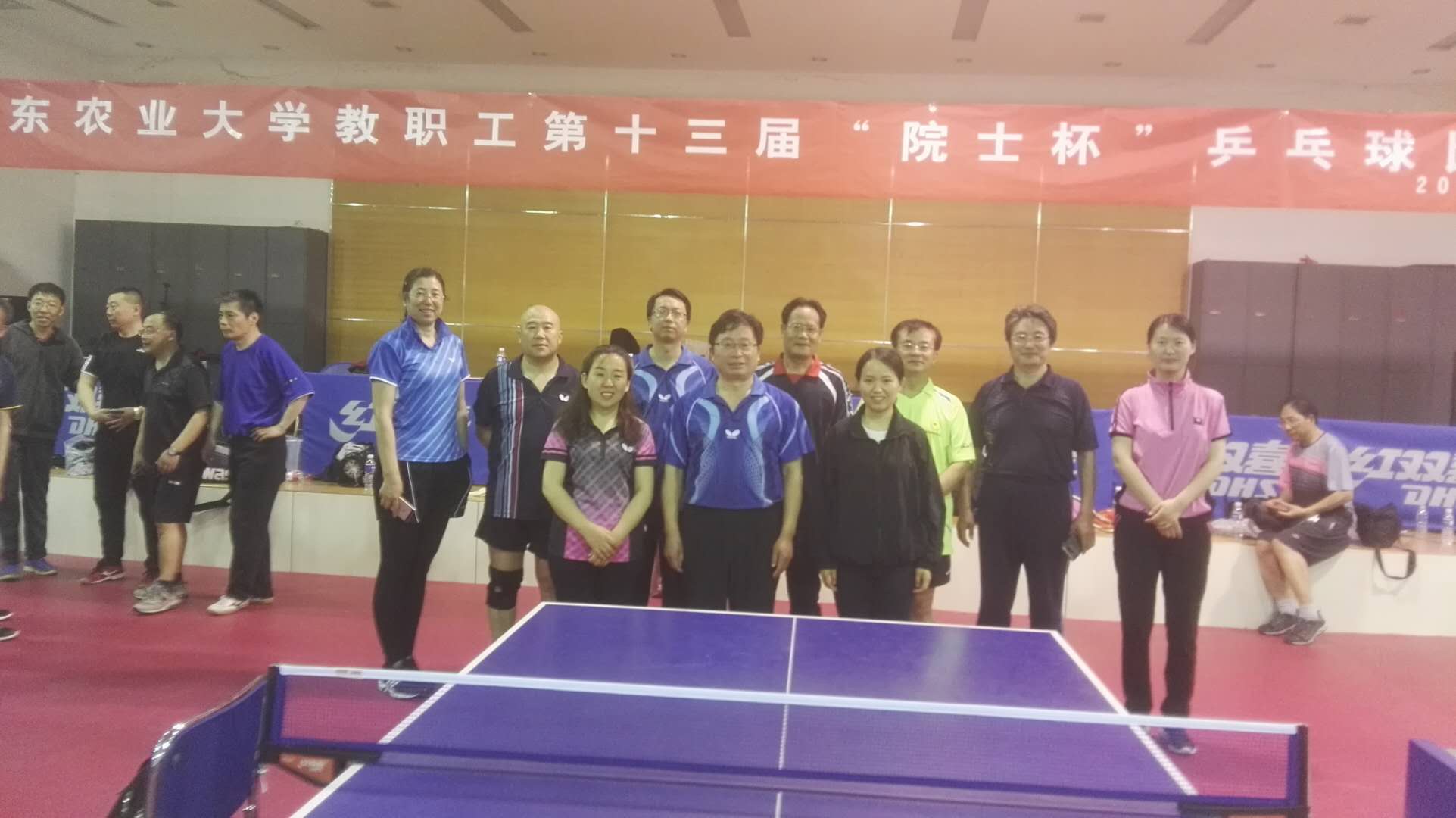 山东农业大学教职工第十三届“院士杯”乒乓球团体赛在北校区体育馆圆满落幕。经过五天激烈的角逐,我院教职工再次蝉联男子团体A组冠军,女子团体首次获得B组冠军,女教工团体队顺利晋级到下届比赛的A组。
