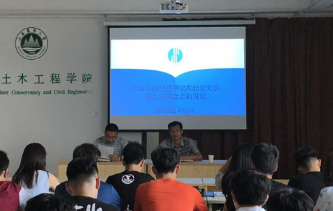 5月15日,水土学院于北校区水工实验楼创新创业实训室召开专题会议,学习习近平总书记在北京大学师生座谈会上的讲话。学院团委书记杜洪涛主持会议,团委老师及2018届学生会全体学生干部参加了本次会议。