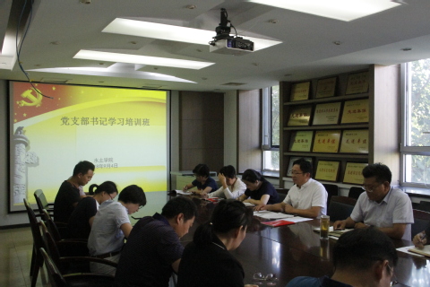 水土学院党委为加强过硬党支部建设,推动全面治党向基层延伸,向纵深发展,强化基层党支部政治功能,提升基层党支部的组织力和战斗堡垒作用,推进过硬党支部建设, 9月4日,学院党委举办了加强过硬党支部建设暨党支部书记培训班。学院党委书记、副书记、委员和13个党支部书记参加了开班仪式。培训班上党委书记胡化坤同志回顾了上半年党建工作、分析了下半年党建工作面临的形势和任务、院党建工作面临的挑战和存在的问题、下一步党建工作重点。党委副书记傅臣家同志针对基层党支部换届、新任党支部书记应具备的党建工作素质、能力、技巧等内容,进行了有针对性的培训教育;以及下一步发挥党支部战斗堡垒作用和党员先锋模范作用开展好扫黑除恶专项斗争工作进行部署。院党委委员、团委书记杜洪涛同志传达了学校关于在广大知识分子中开展“弘扬爱国奋斗精神,建功立业新时代”以及开展师德建设教育月活动等通知精神。新任党支部书记胡琳琳表示,以至此培训班为契机,努力工作,发挥党支部战斗堡垒和党员先锋模范作用,为学院发展贡献力量。