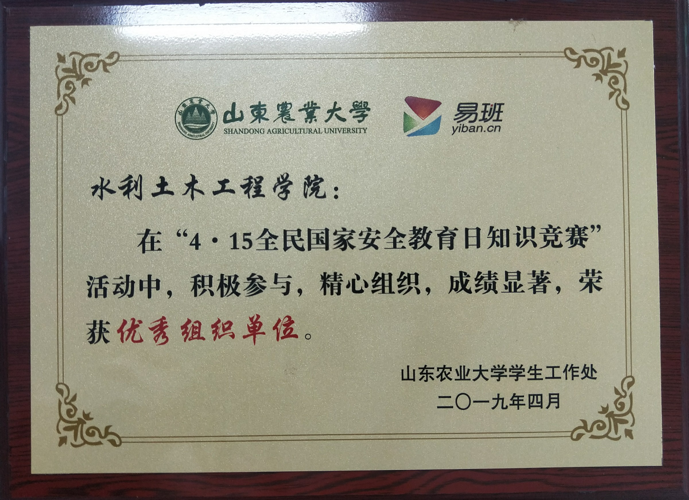 本次竞赛分为线上学习和测试两部分。水土学院积极参与,精心组织,广泛动员同学们利用课下时间进行线上学习,同时强调了参赛流程及线上答题注意事项。最终,水土学院凭借优异的答题成绩和良好的活动效果,被学校授予“优秀组织单位奖”。