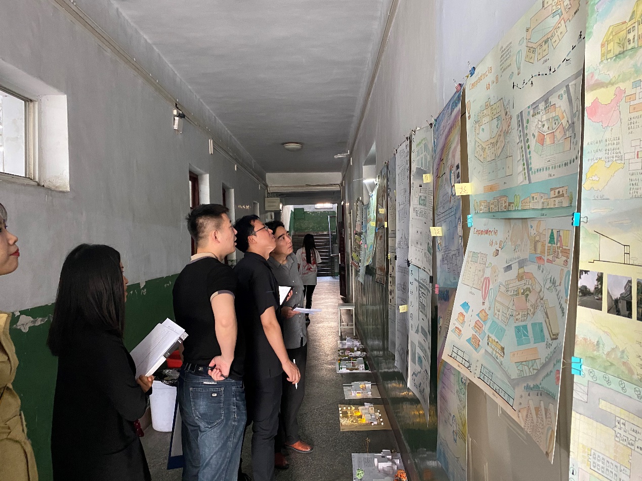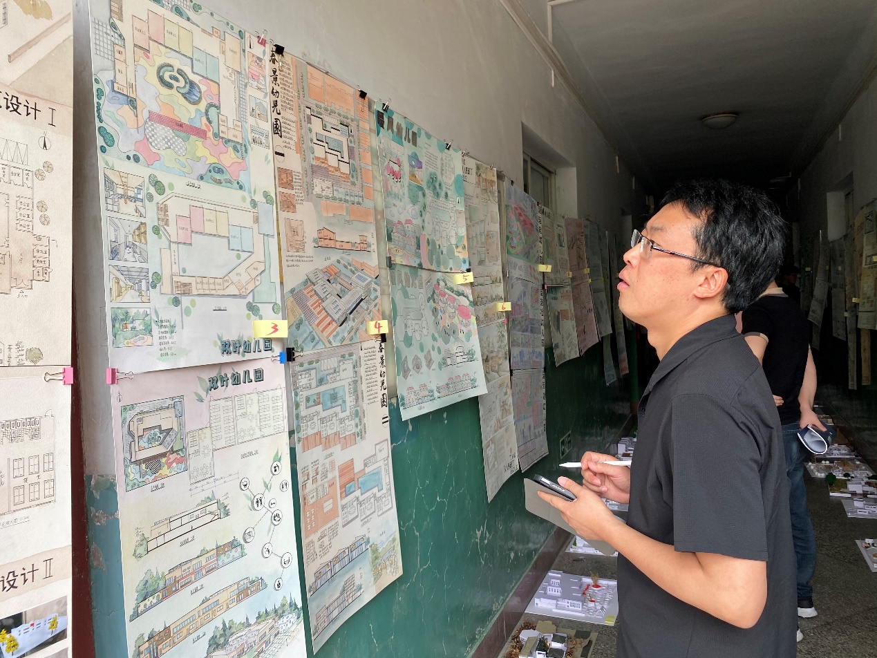 此次课程设计的任务是幼儿园建筑设计。钟院长从专业实践的角度仔细地审阅同学们的作品,他发现同学们的设计成果想法各异,各有特色,对此非常欣慰,并对我校建筑学的教学水平给予了高度的评价。钟院长认为,建筑设计不能固化思维,需要积极创新。他鼓励同学们要运用发散思维,开动脑筋,在继承优秀传统文化的基础上不断推陈出新。
