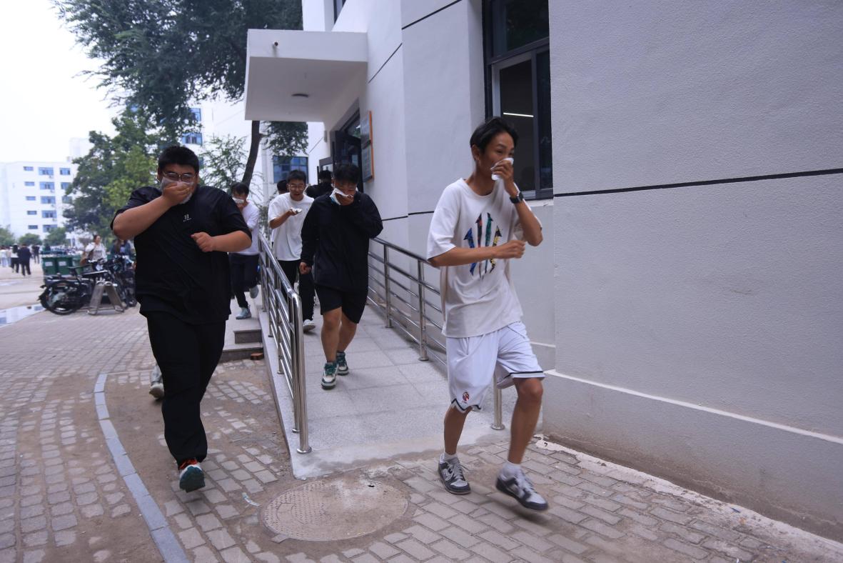 下午三时,演练总指挥、学院团委书记赵鸿宣布演练正式开始。模拟火情发生后,公寓管理员第一时间启动应急响应,开启所有疏散通道。参演师生在疏散引导组的指挥下,按照应急预案快速有序撤离。整个疏散过程组织严密、响应迅速,充分展现了学院师生良好的安全素养和应急处置能力。