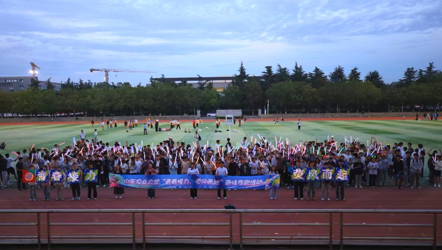 9月26日,山东农业大学2025年度校园文化活动 “一月一精品”之“青春接力,荧风而起”趣味夜跑活动在南校区南操场顺利举行。本活动由校团委主办,水土学院承办,共吸引全校16个学院33支队伍近400名新生参与。