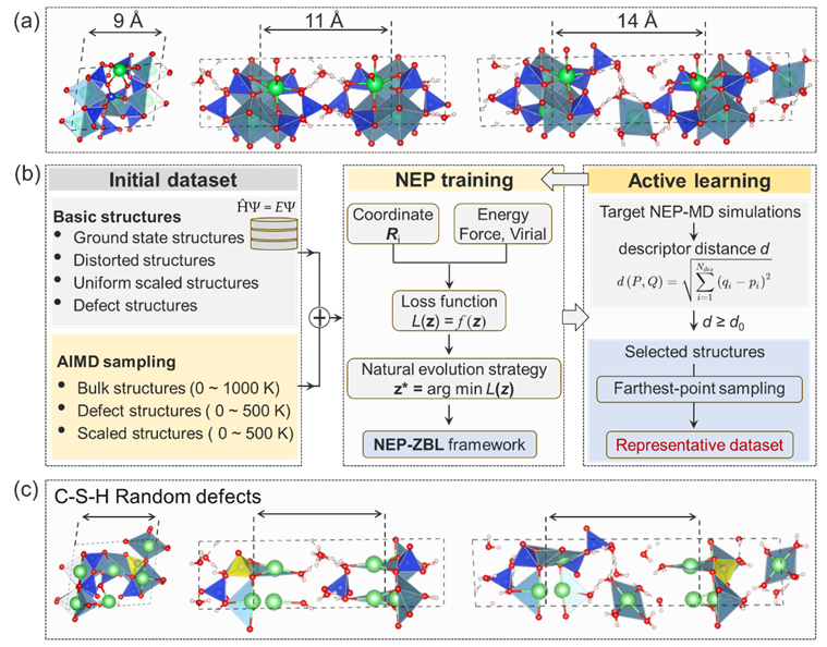 近日,水利土木工程学院尹航团队在混凝土材料顶刊《Cement and Concrete Research》发表题为“A high-efficiency neuroevolution potential for tobermorite and calcium silicate hydrate systems with ab initio accuracy”的研究论文。2023级硕士研究生徐潇为论文第一作者,尹航副教授、新加坡科技局赵志强博士后、南京航空航天大学张助华教授为论文通讯作者,硕士研究生王世杰、秦海峰参与论文研究,该工作还得到了渤海大学樊哲勇教授的大力支持。山东农业大学为第一通讯单位。