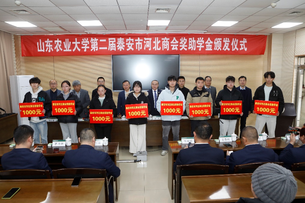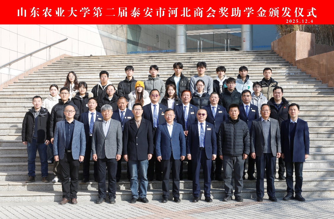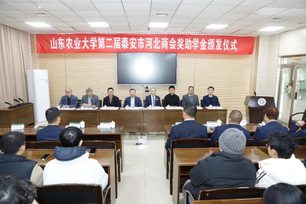12月4日,学校第二届“泰安市河北商会奖助学金”颁发仪式在岱宗校区文理大楼第二会议室举行。山东农业大学党委常委、副校长李广松,泰安市河北商会会长、山东路达试验仪器有限公司董事长唐飞出席活动。