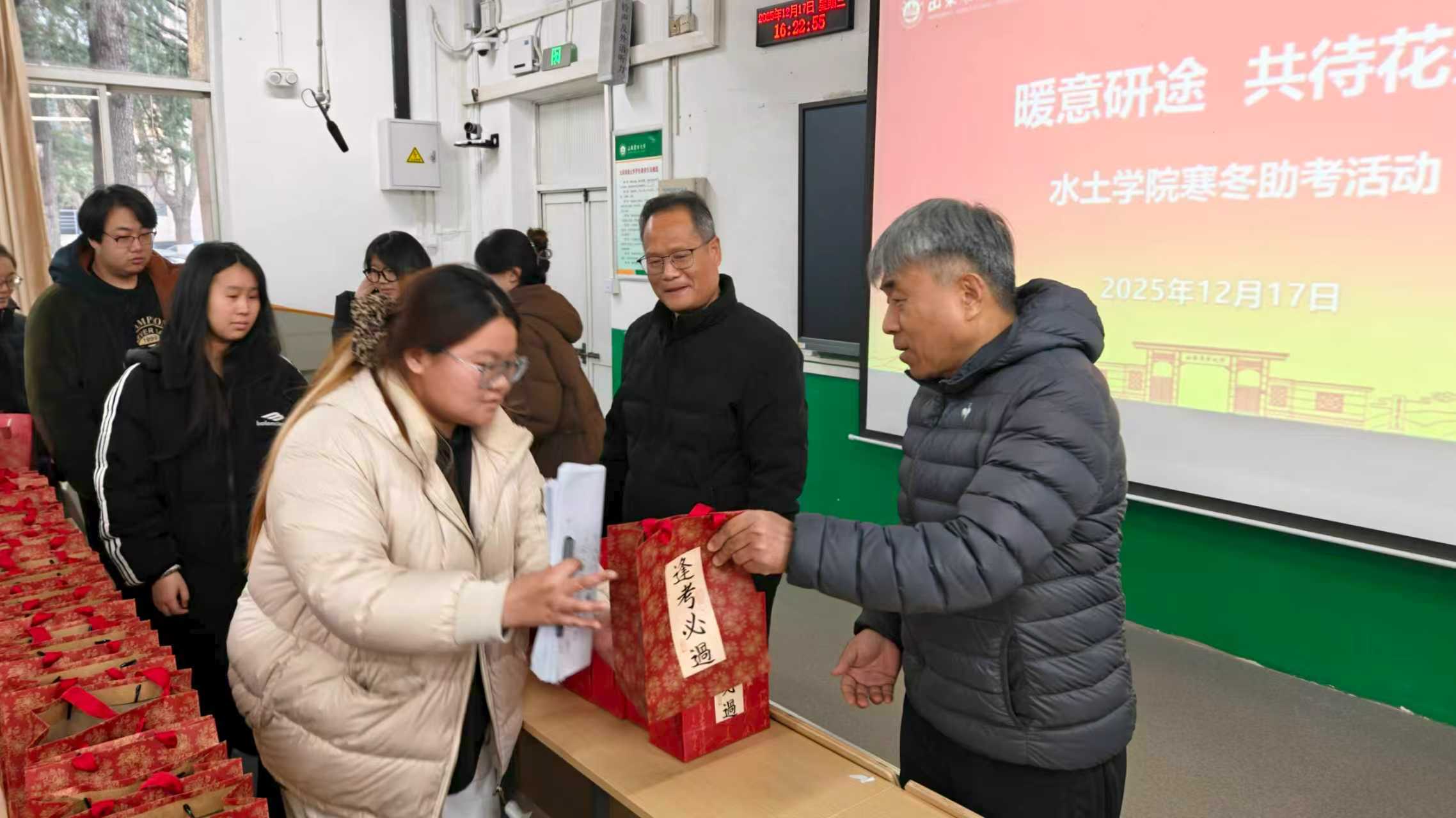 12月17日,学院组织开展“暖意研途 共待花开”考研送温暖活动,为学院所有考研学子送上暖心关怀与诚挚祝福。