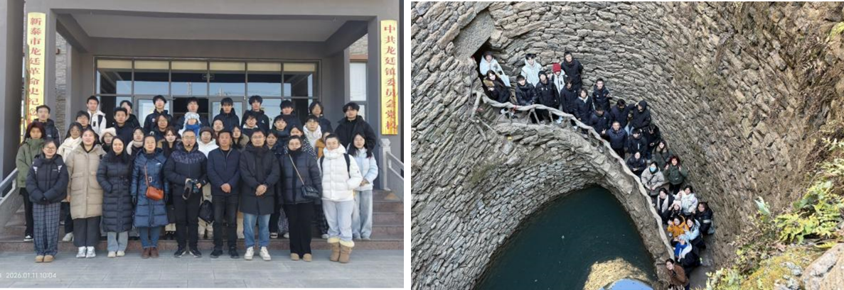 本次行程安排紧凑、重点突出。师生一行首先抵达龙廷镇掌平洼村,在龙廷革命史纪念馆中聆听革命先辈英勇奋斗的光辉事迹,深刻感悟红色精神的力量;随后参观老井精神纪念馆,聆听了村党支部书记刘方军讲述村民历时十年、肩挑手凿开掘巨型饮水井的感人故事,切身感受到艰苦奋斗、自强不息的“老井精神”。师生们还实地调研了该村依托杏梅产业、农文旅融合推进乡村振兴的创新实践。